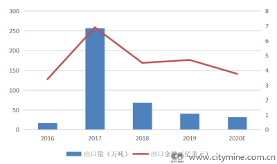 △ 图4 2016年-2020年主要再生资源的出口量(资料来源:商务部、HGFR)