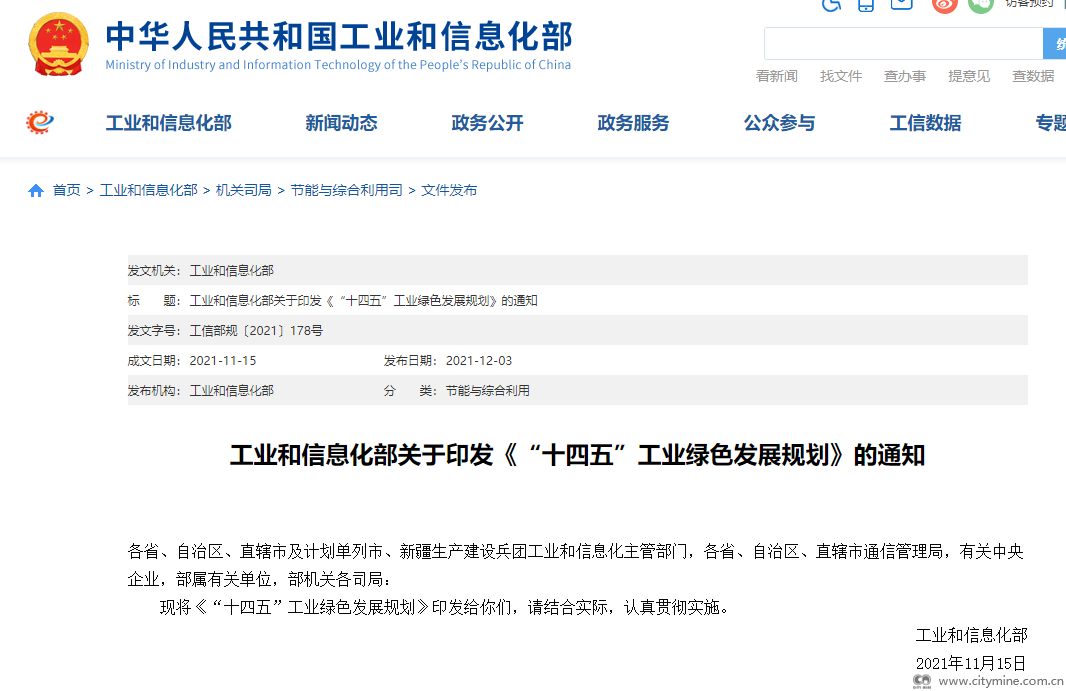 工业和信息化部关于印发《“十四五”工业绿色发展规划》的通知