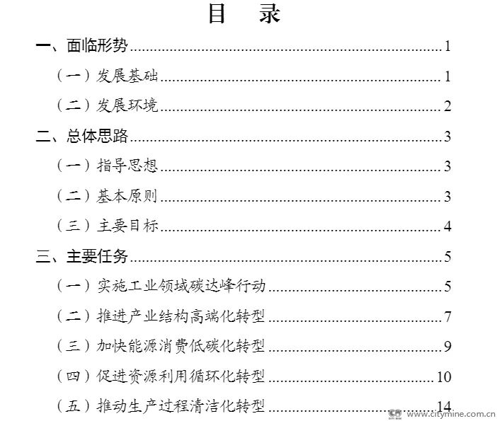 到2025年,工业产业结构、生产方式绿色低碳转型取得显著成效,绿色低碳技术装备广泛应用,能源资源利用效率大幅提高,绿色制造水平全面提升,为2030年工业领域碳达峰奠定坚实基础。碳排放强度持续下降。单位工业增加值二氧化碳排放降低 18%,钢铁、有色金属、建材等重点行业碳排放总量控制取得阶段性成果。