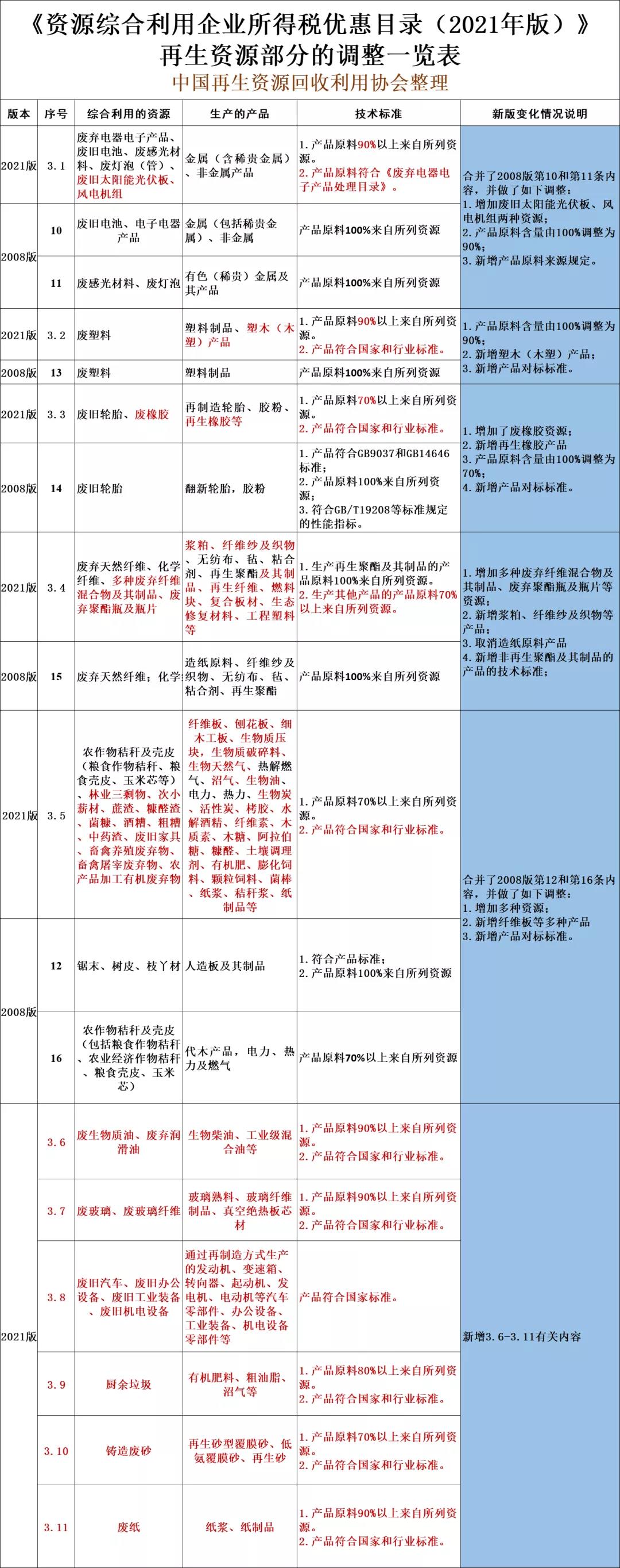 《资源综合利用企业所得税优惠目录(2021年版)》的公告