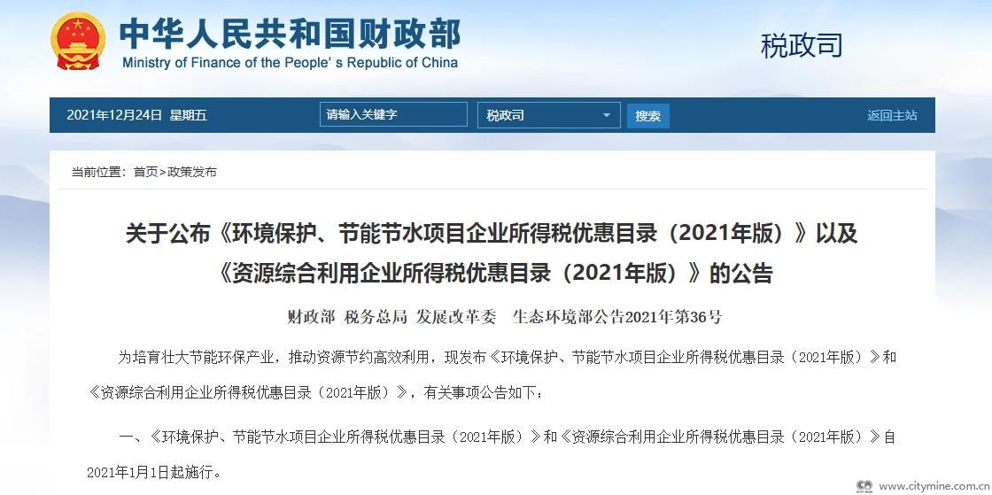 为培育壮大节能环保产业,推动资源节约高效利用,现发布《环境保护、节能节水项目企业所得税优惠目录(2021年版)》和《资源综合利用企业所得税优惠目录(2021年版)》,有关事项公告如下: