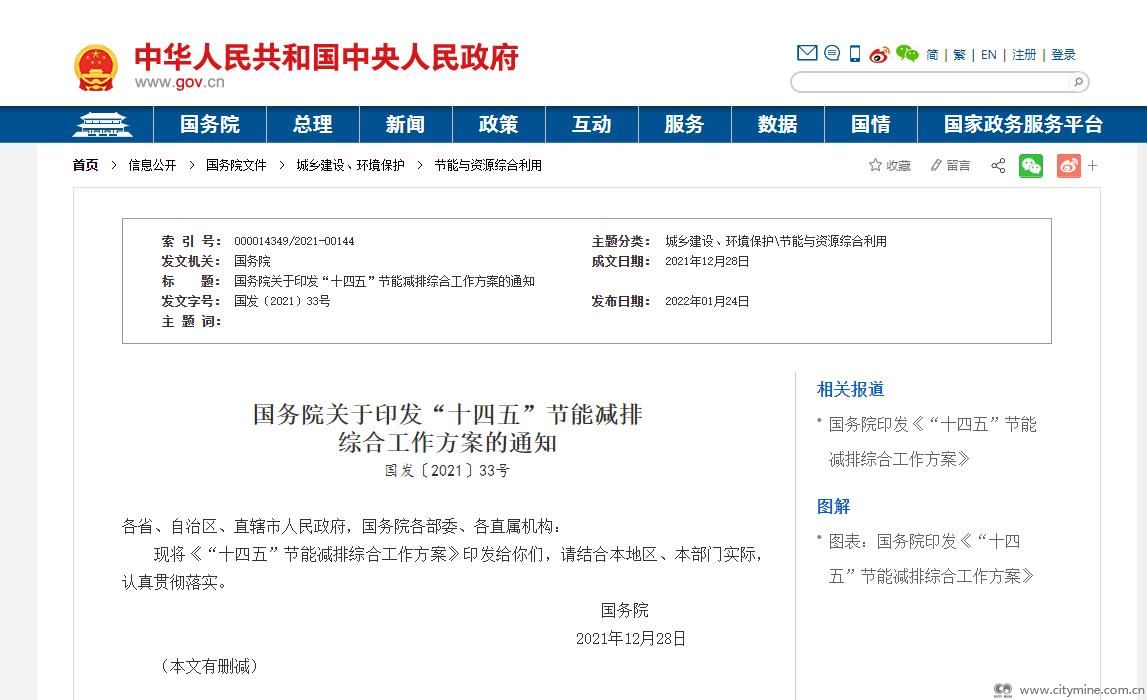 国务院关于印发“十四五”节能减排综合工作方案的通知