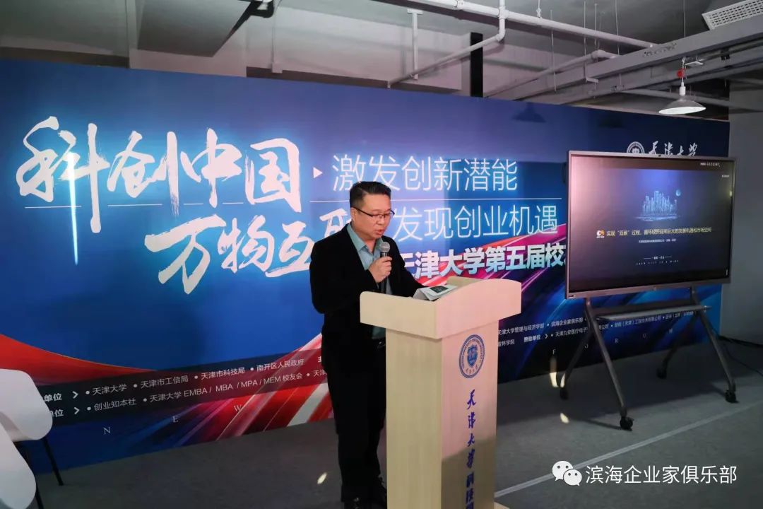 2022年01月25日2022年1月8日,天津大学第五届校友创新创业新年论坛如期开幕,本次论坛采取线下小范围交流与线上直播的方式进行,近5000全球天大校友在线上围绕创新创业主题碰撞思想,交流互动。以“科创中国,激发创新潜能;万物互联,发现创业机遇”为主题,天大校友企业家、创业家相聚一堂,共话创新创业、夯实创业生态取得的新进展,推动天津大学“斯坦福+硅谷”模式的形成。滨海企业家俱乐部与天大校友会携手并进、共建共赢,实现俱乐部始终坚守的初心使命:致力于打造促进创业的家园、搭建成果共享的舞台、创建学习交流的平台、构建政商互动的桥梁。滨海企业家俱乐部轮值理事长、天津拾起卖科技有限公司总裁陈奕结合创新创业,做了《实现“双碳”过程,循环经济迎来巨大的发展机遇和市场空间》专题演讲。