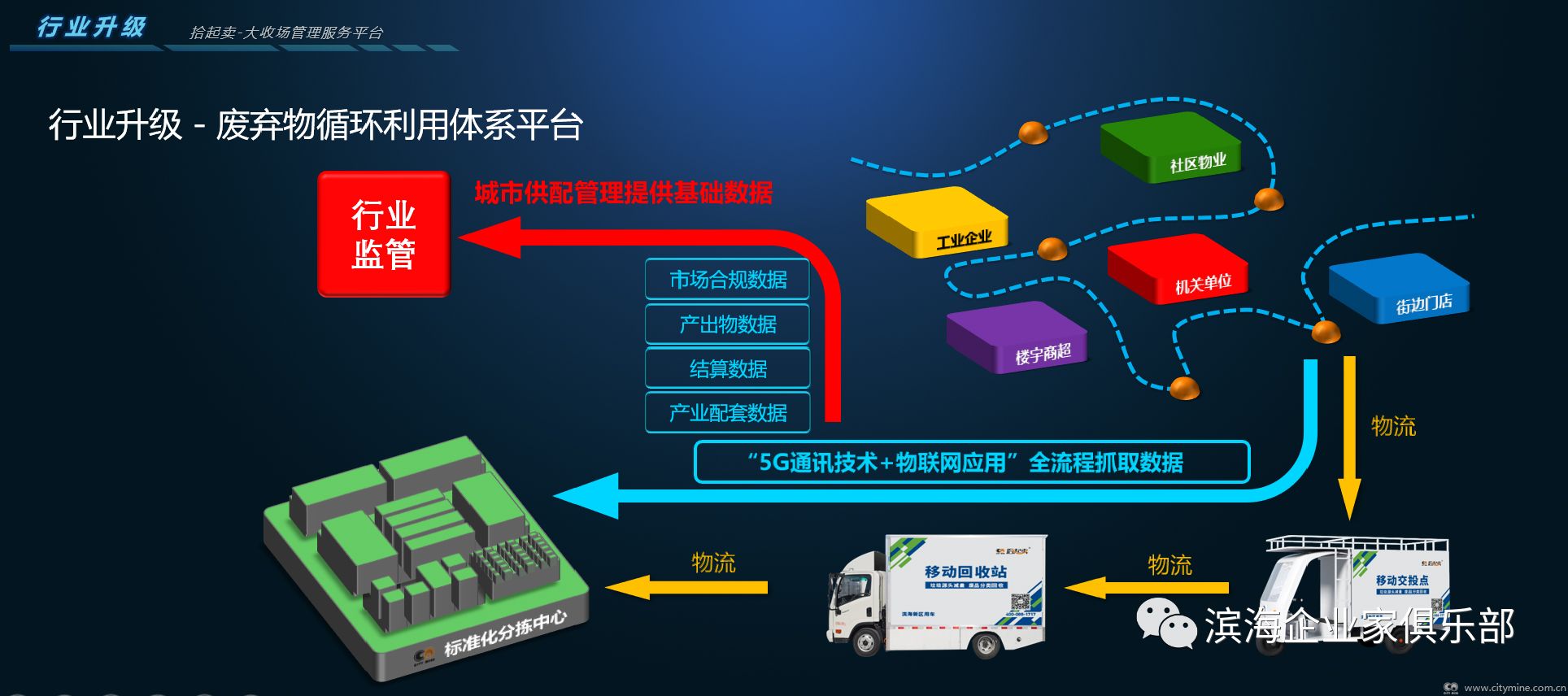 垃圾是放错地方的资源,也是唯一在快速增长的资源。解决好垃圾处理问题每一个城市都将成为一座取之不尽的矿山。目前资源回收行业现状比较低效,很多方面均限制了行业的发展和规模。为了在高速发展和国家大力支持的循环产业中,正确把握机遇,同时控制好风险,拾起卖通过运用数字化技术从产业需求出发通过互联网赋能助推循环产业供应链升级,从而影响整个循环产业。
