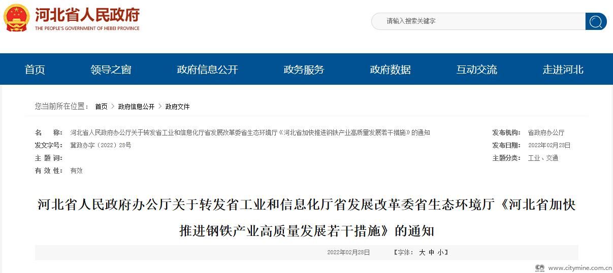 《河北省加快推进钢铁产业高质量发展若干措施》印发