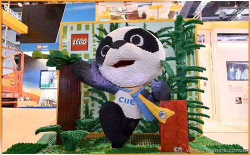 就比如乐高集团,作为一家知名玩具厂商别出心裁地在展台前摆起了3D版"进宝"。这个仿真进博会吉祥物确实吸睛,据乐高集团称,这个1.5米高的"进宝"花了8个人3周的时间,用了21.1万块积木才组建完成。