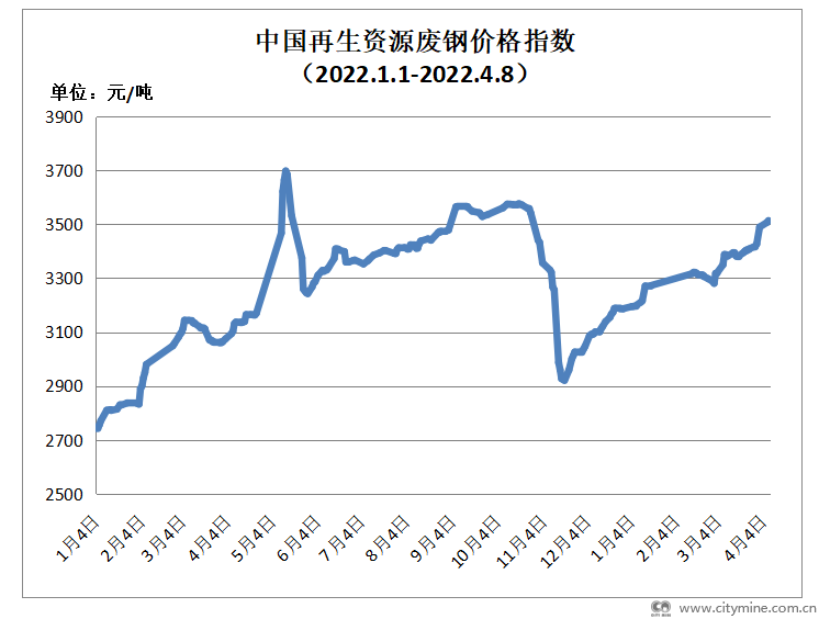 今日中国再生资源废钢价格指数3514元/吨,较昨日持平。今废钢市场主稳运行。受期螺下跌影响,建筑钢材市场部分资源跌10-30元/吨,废钢市场货源流通量维持低位,贸易商观望为主,虽钢企压价意愿增强,但市场货源较为紧张。预计短期废钢市场主稳盘整。