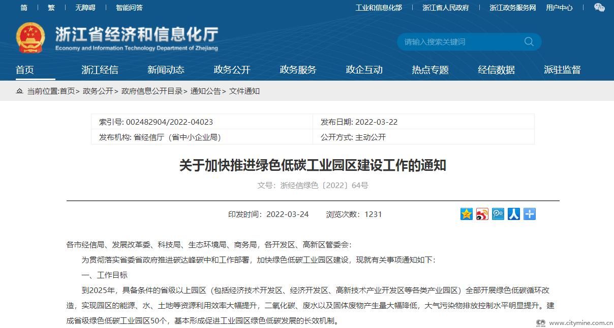 到2025年建成省级绿色低碳工业园区50个!