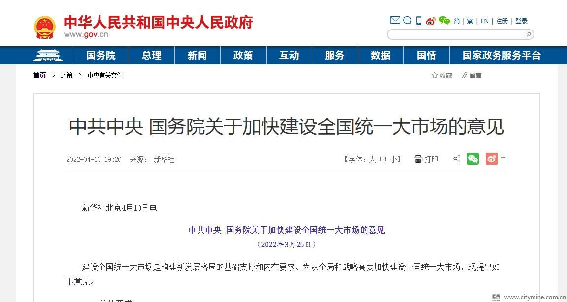 中共中央 国务院关于加快建设全国统一大市场的意见
