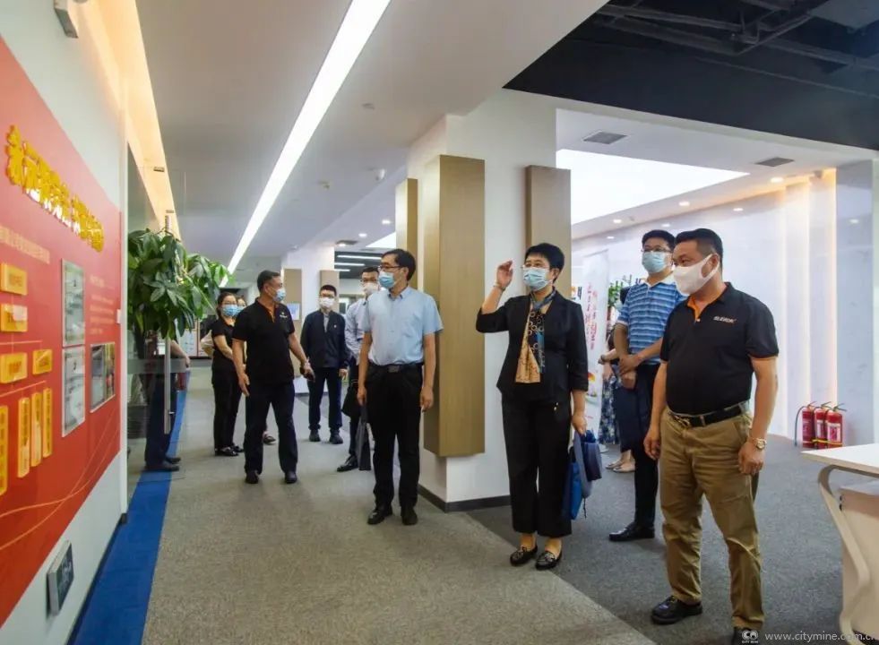 陈奕总裁及相关负责人陪同东蓓秀处长一行参观了互联网研发事业部、企业的红色文化教育园地、企业文化走廊、知识产权展示墙;观摩了“城市矿山交易平台”及“城市年代记忆馆”展区。