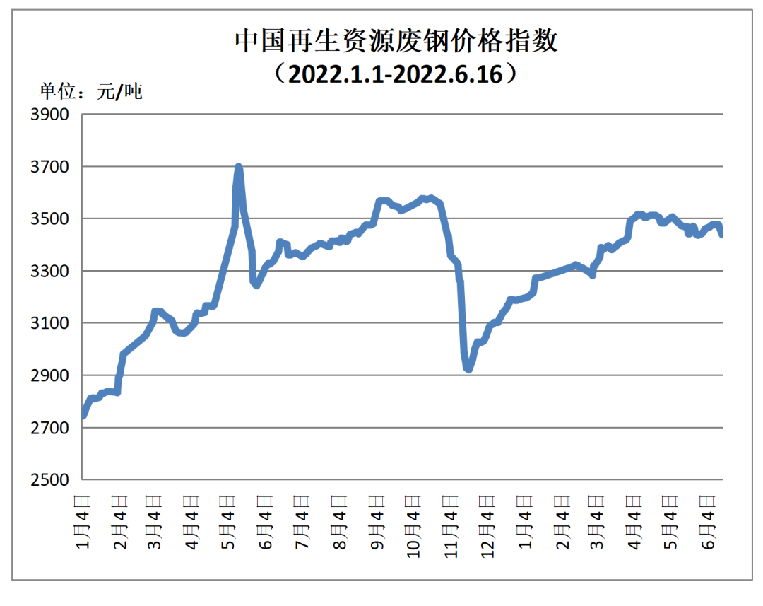 今日中国再生资源废钢价格指数3462元/吨,较上个交易日下跌13元/吨。今日废钢部分市场继续弱势下行。经过持续跌价,贸易商出货意愿有所减弱,钢企到货量较前期减少。但利润低迷情况下,钢企压价不止。短期市场弱势依旧。