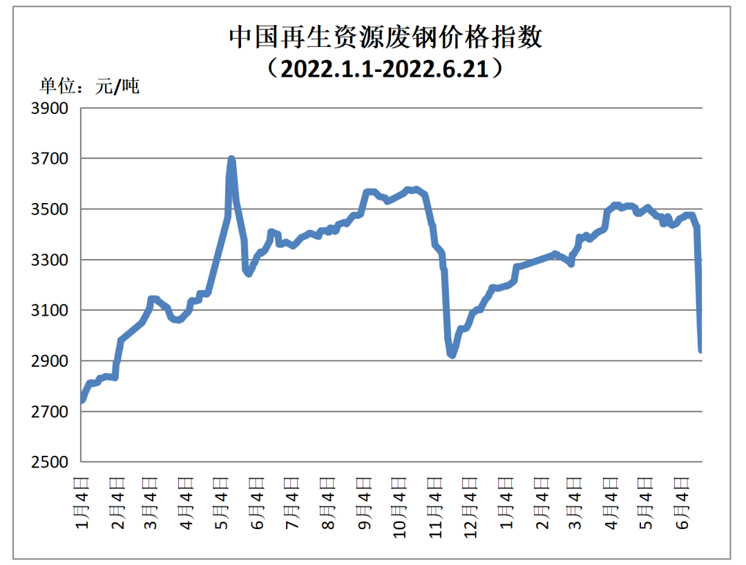 今日中国再生资源废钢价格指数2941元/吨,较上个交易日下跌93元/吨。今日废钢市场整体弱势下行。今成材市场出现反弹,带动钢坯市场拉涨,提振市场信心,利好废钢市场。贸易商心态迷茫,观望为主。短期市场跌势暂缓。