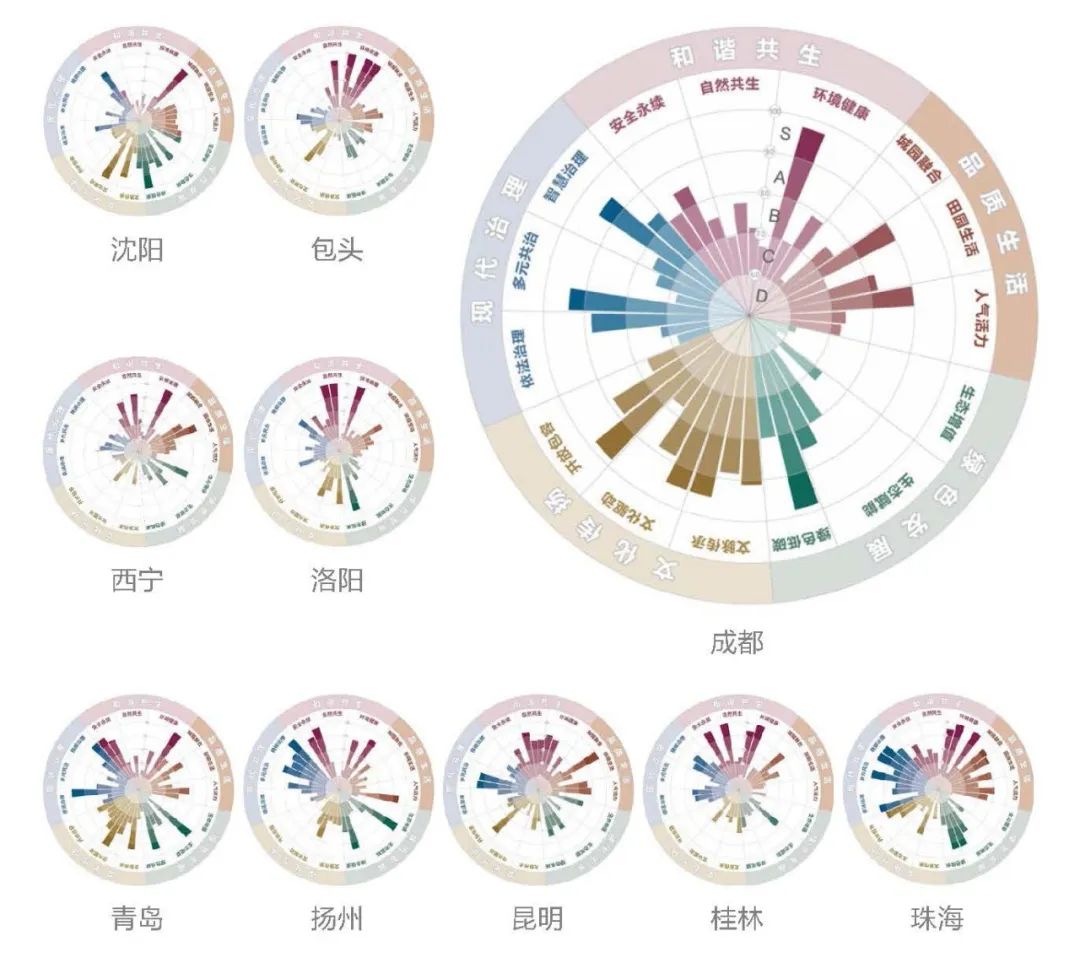 段进教授介绍,在指标体系形成的基础上,采用了“10+N”的试算方法:选取国内不同地域、不同区位、不同大小的10个具有典型性、代表性的城市,包括西宁、包头、沈阳、青岛、洛阳、扬州、成都、昆明、桂林和珠海对指标进行试算,以验证指标是否具有广泛适用性;同时选取在特定指标方向表现较好的N个特殊城市,如北京、上海等,以保证指标取值的合理性。通过试算,科学客观地反映了这些城市的优势和短板,为它们进一步践行公园城市理念指出了方向。