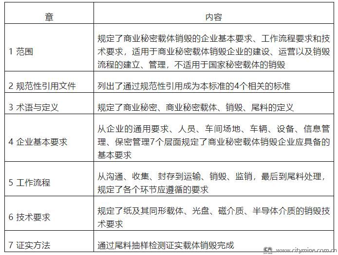 本标准立足于商业秘密载体销毁企业的建设、运营以及销毁流程的建立、管理,结合已有的涉密载体处理企业建设情况,规定了商业秘密载体销毁的企业基本要求、工作流程和技术要求。