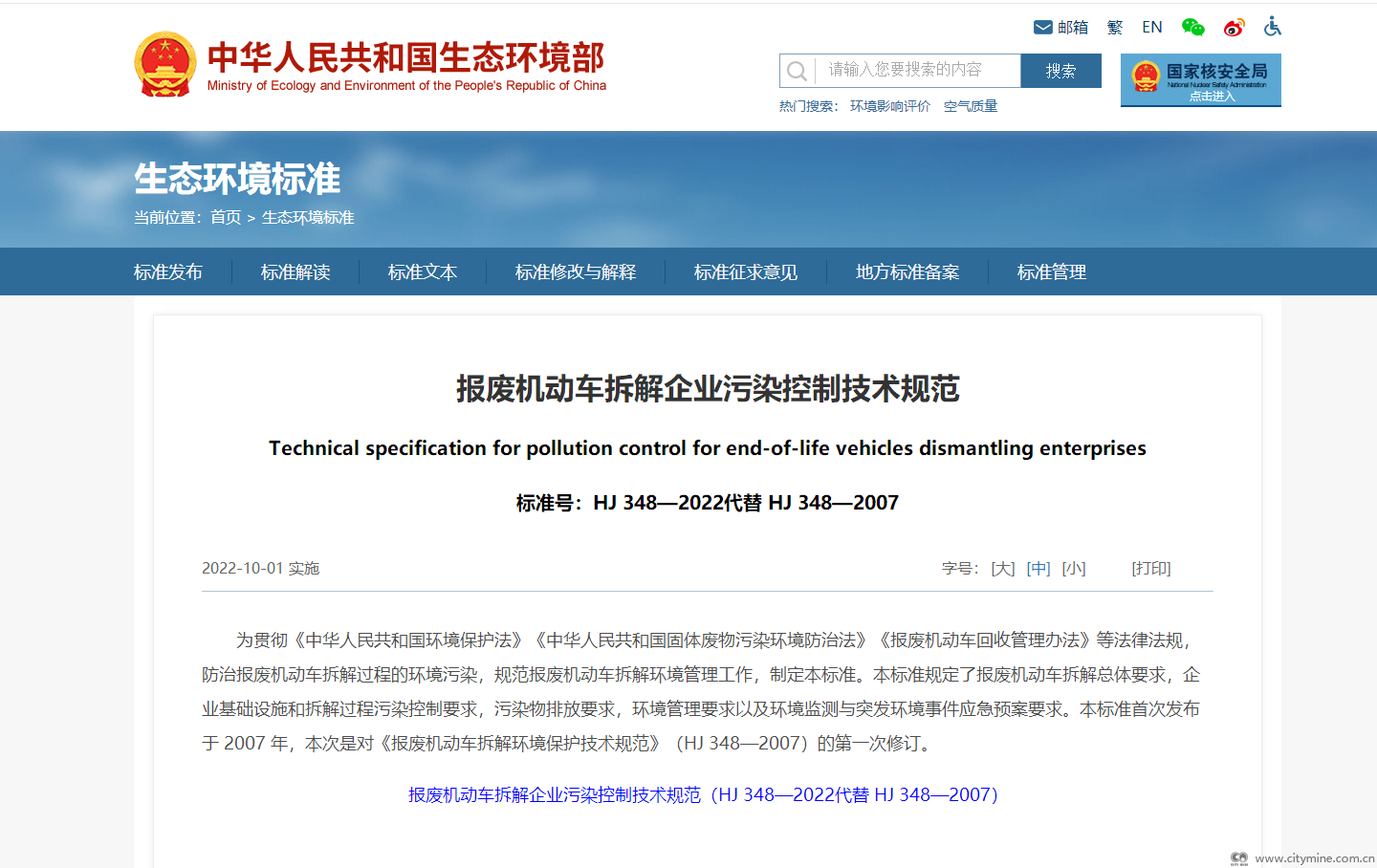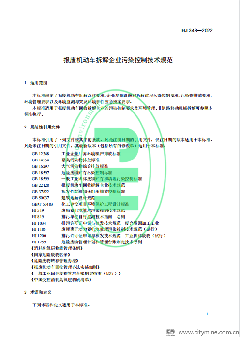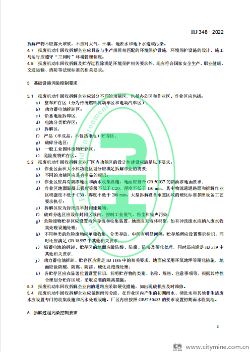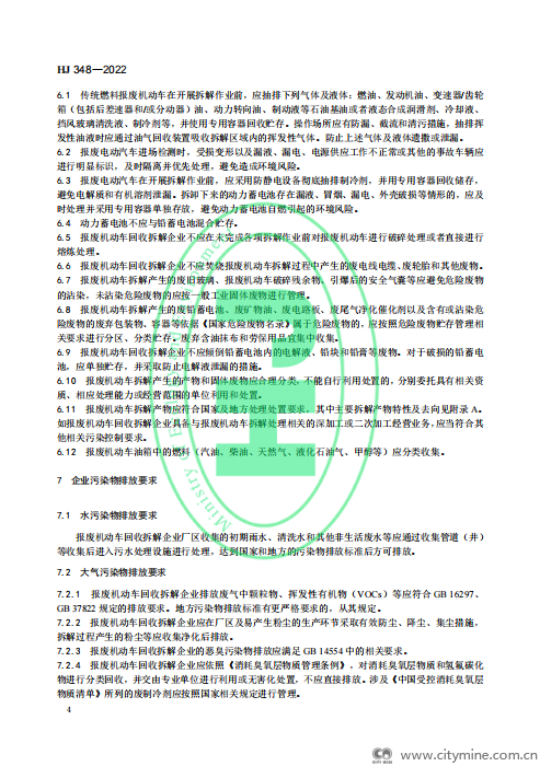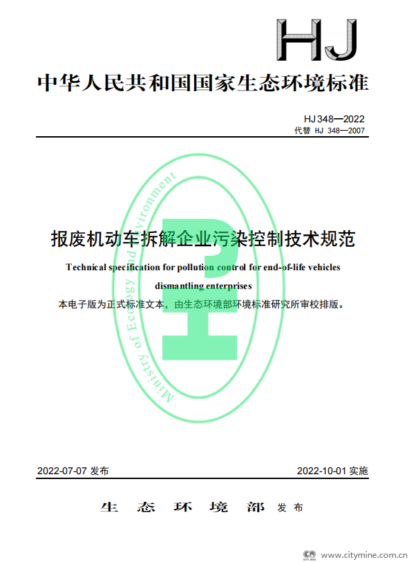 2022年07月26日生态环境部:报废机动车拆解企业污染控制技术规范(HJ348)