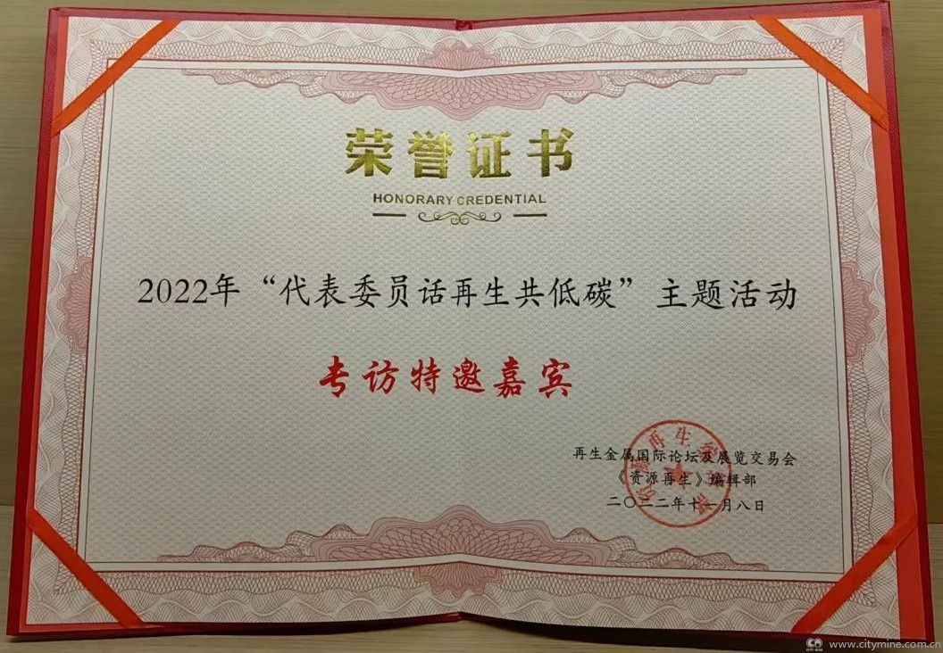拾起卖荣获了“2022年‘代表委员话再生共低碳’主题活动专访特邀嘉宾”荣誉证书。