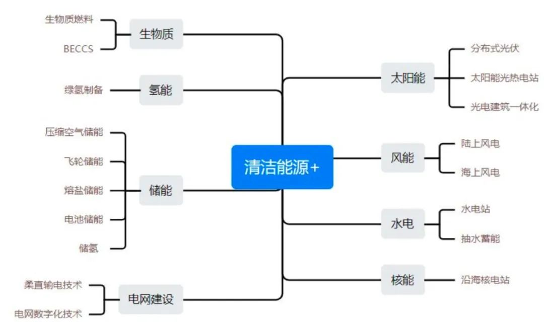 新能源领域投资加法部分,报告指出以风电、光伏、水电、核能、生物质、地热能、潮汐能等可再生能源电力和非碳能源为主的生产方式或将得到进一步发展;同时储能、电力供应系统、电网输配技术等配套技术发展也将带动部分产业的投资热度兴起。