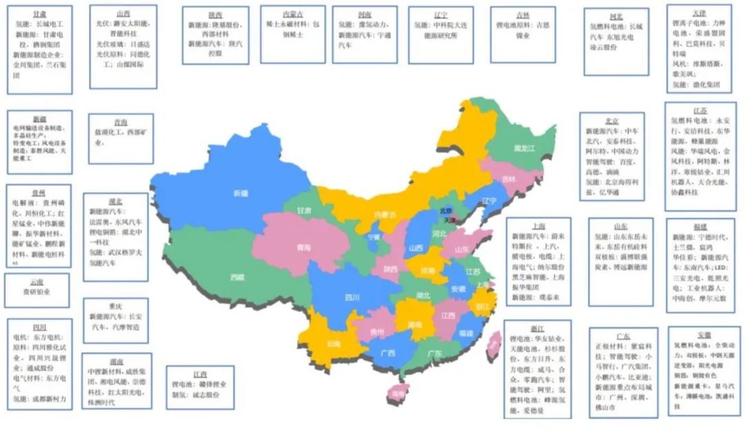 报告重点分析了新能源领域投资加法、传统工业领域和节能减排领域、环保领域投资加法以及负碳技术领域投资关注点,并制作了《双碳背景下绿色投融资区域分布图》总结了各省绿色投融资方向和重点企业。