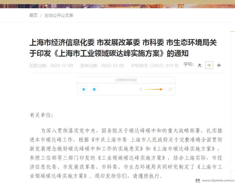 深化资源综合利用!《上海市工业领域碳达峰实施方案》印发