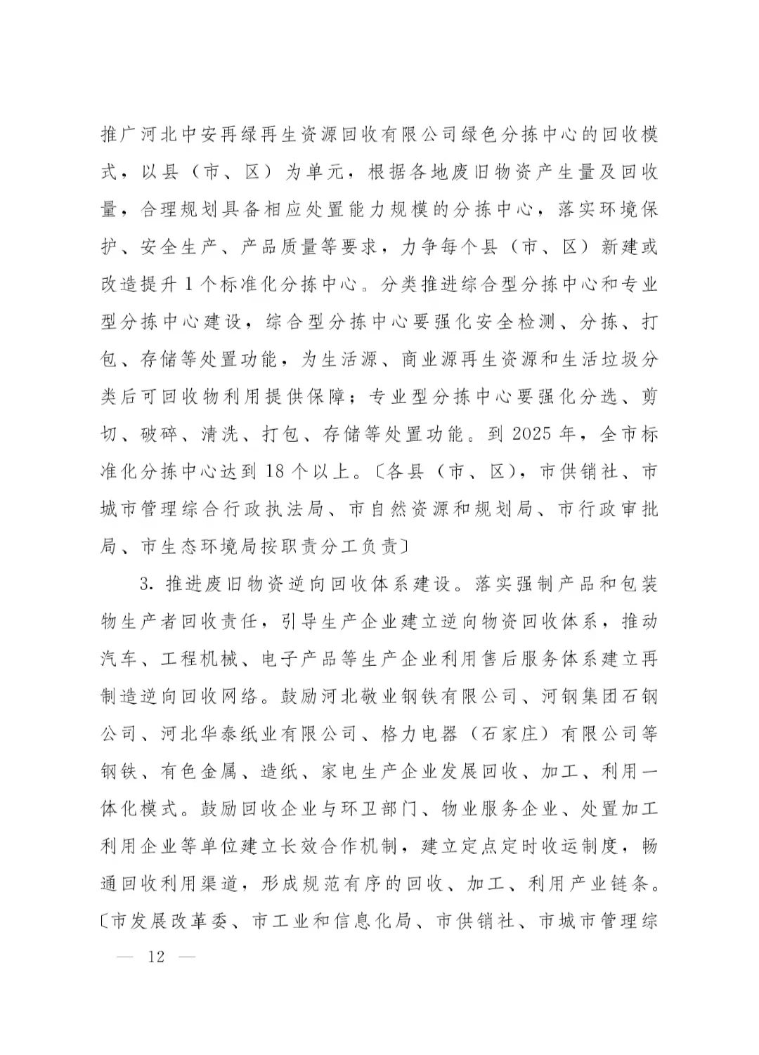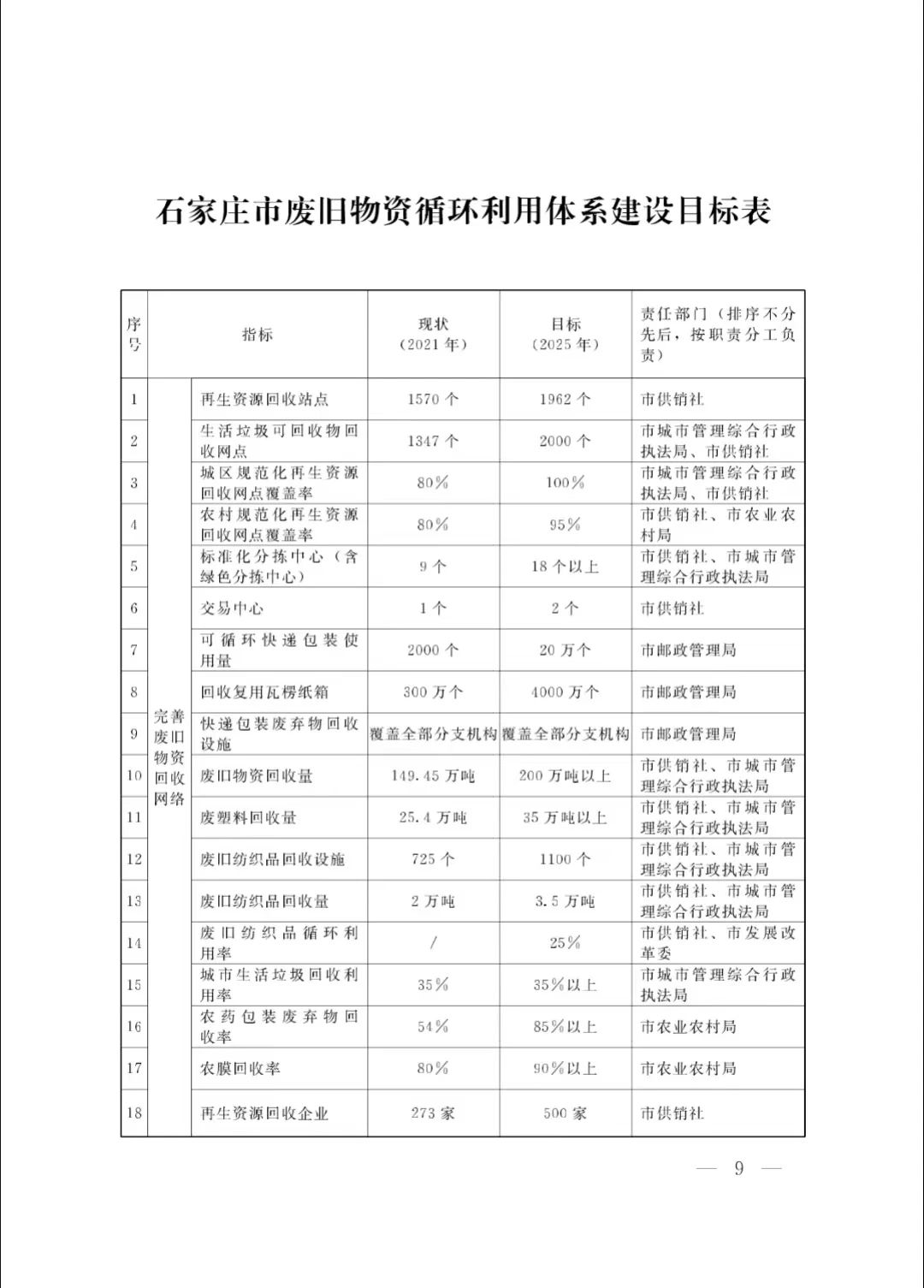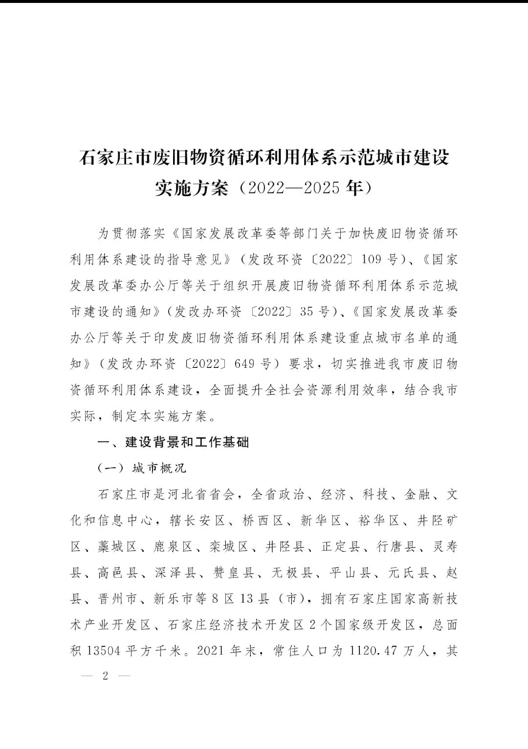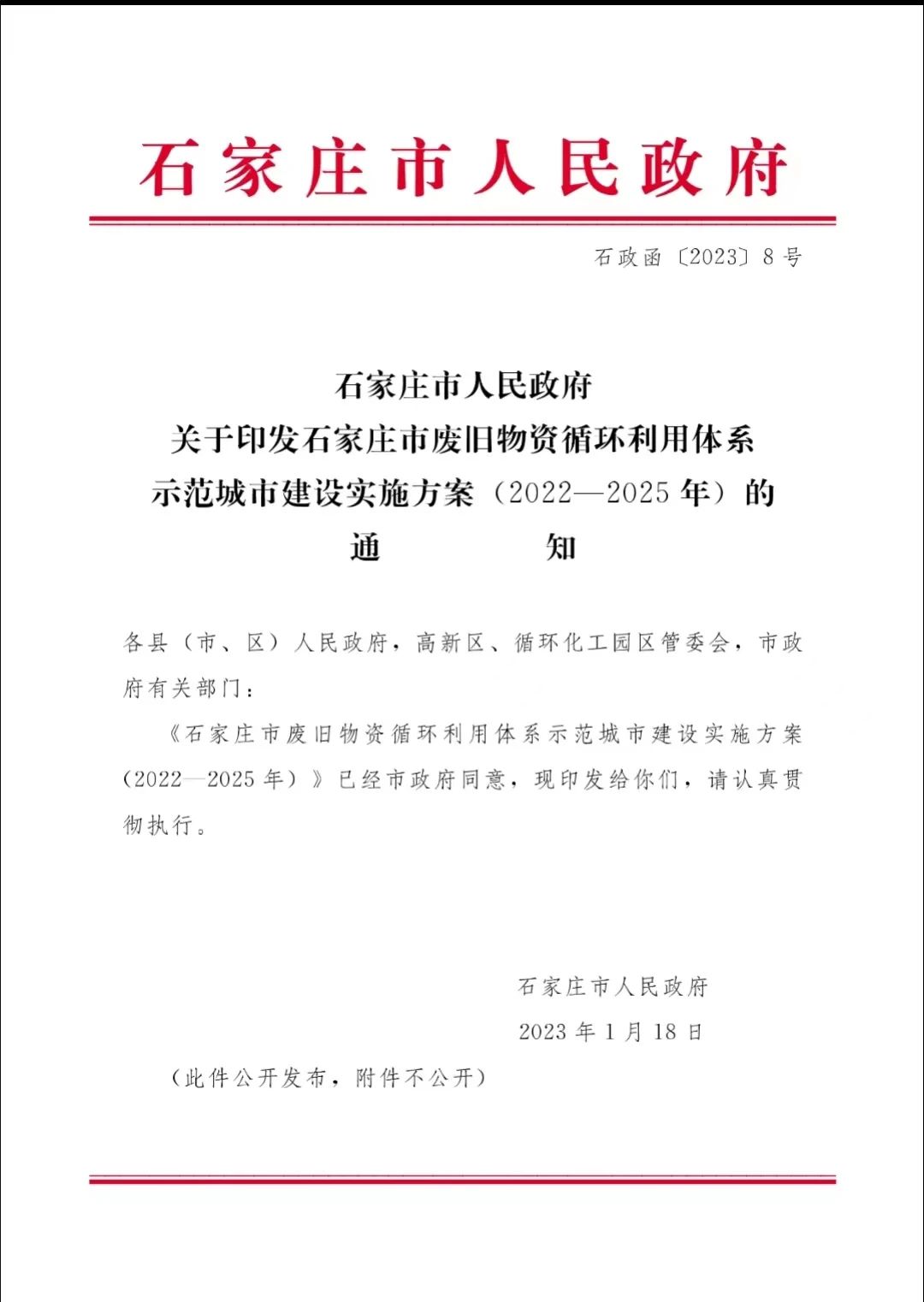原标题:【河北】关于印发石家庄市废旧物资循环利用体系示范城市建设实施方案(2022-2025年)的通知