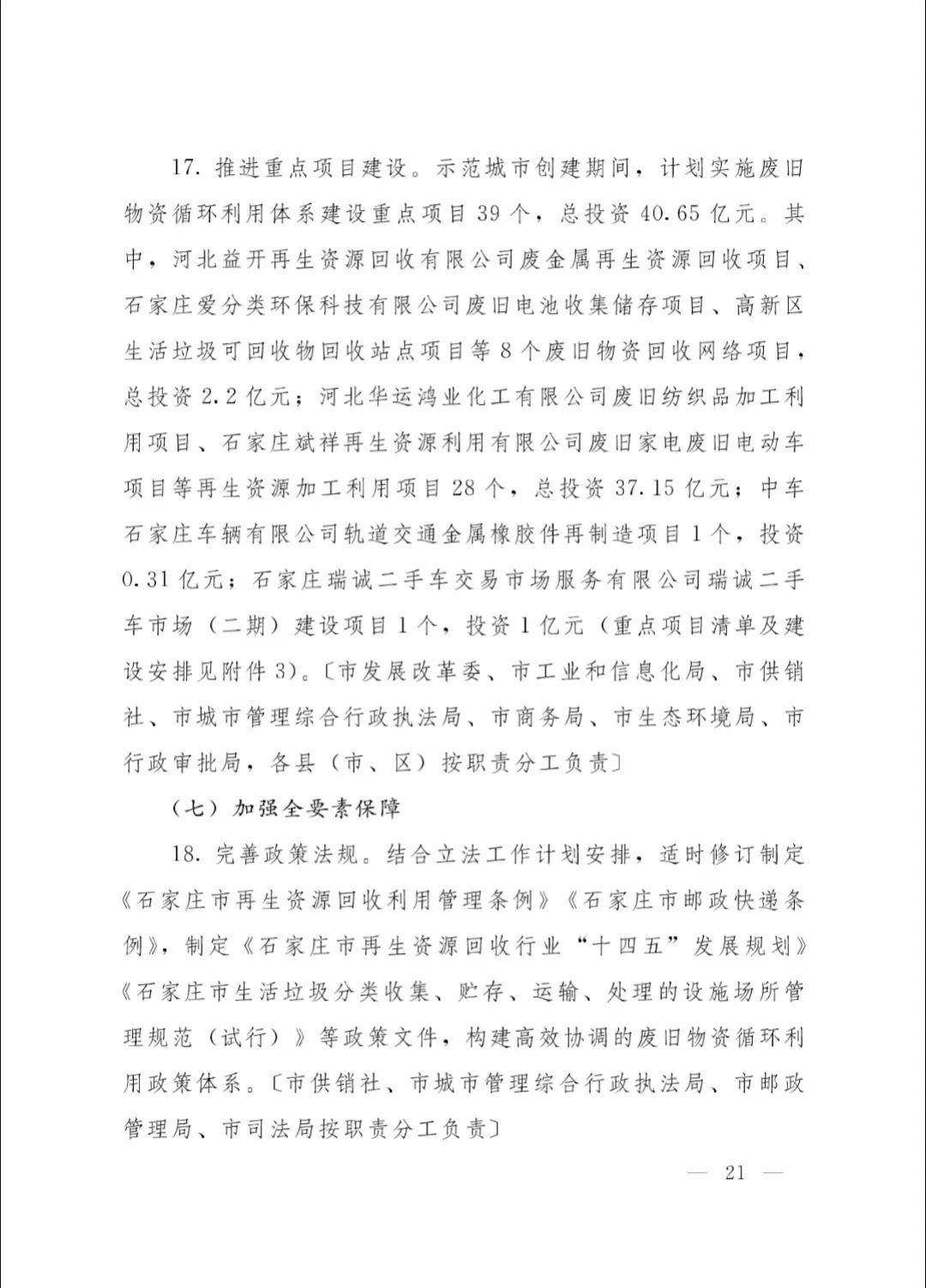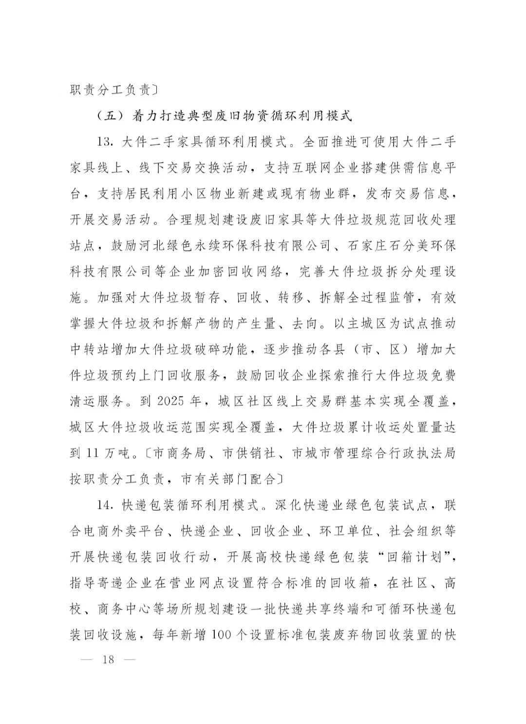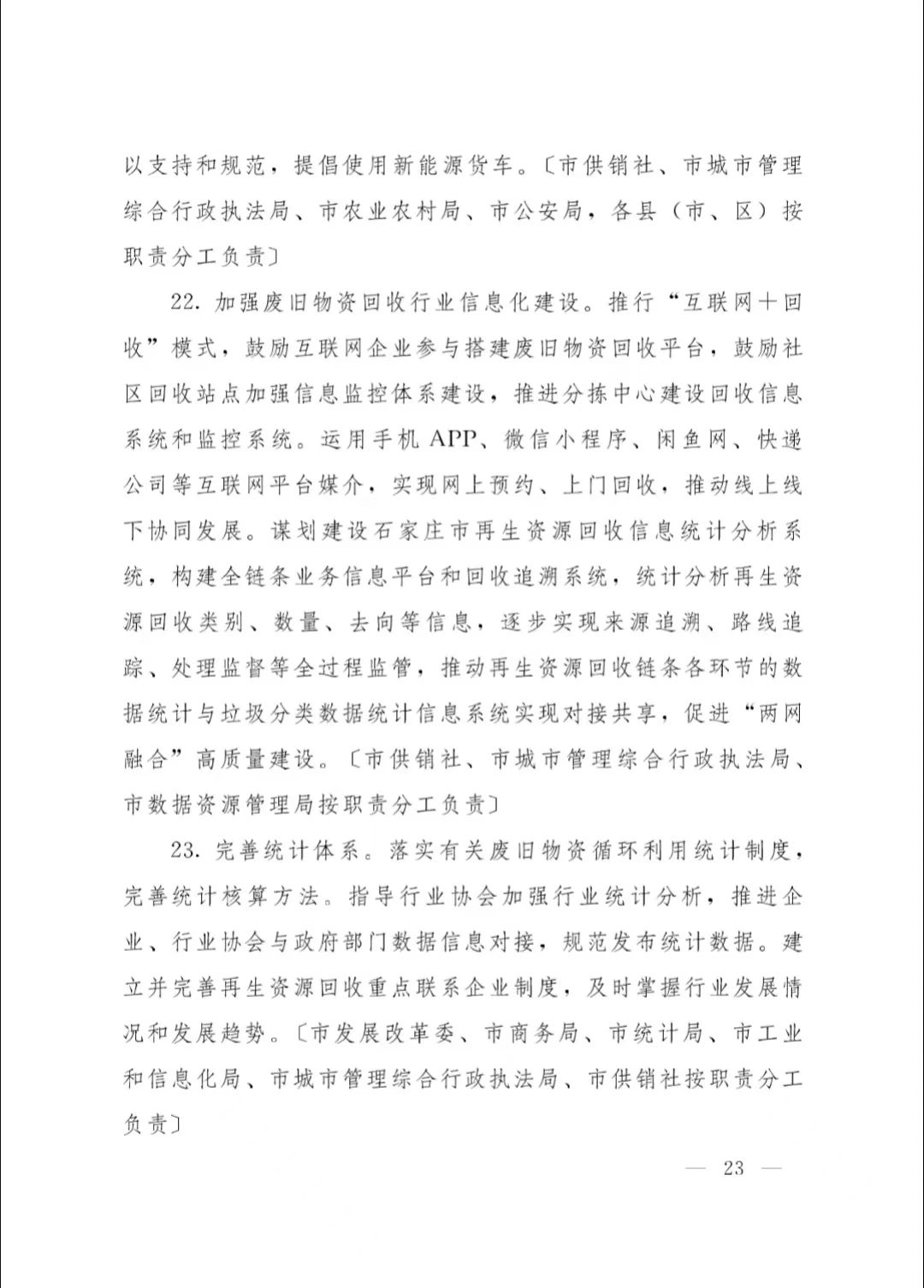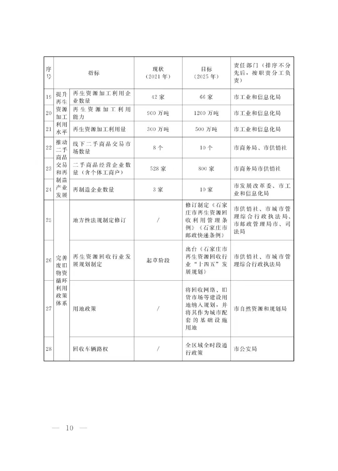 原标题:【河北】关于印发石家庄市废旧物资循环利用体系示范城市建设实施方案(2022-2025年)的通知