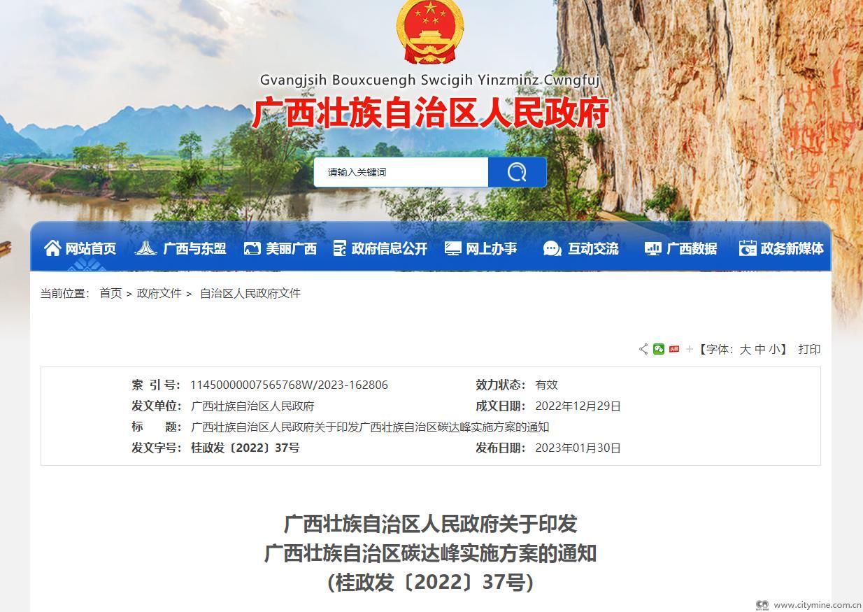 附件:广西壮族自治区人民政府关于印发广西壮族自治区碳达峰实施方案的通知(桂政发〔2022〕37号)