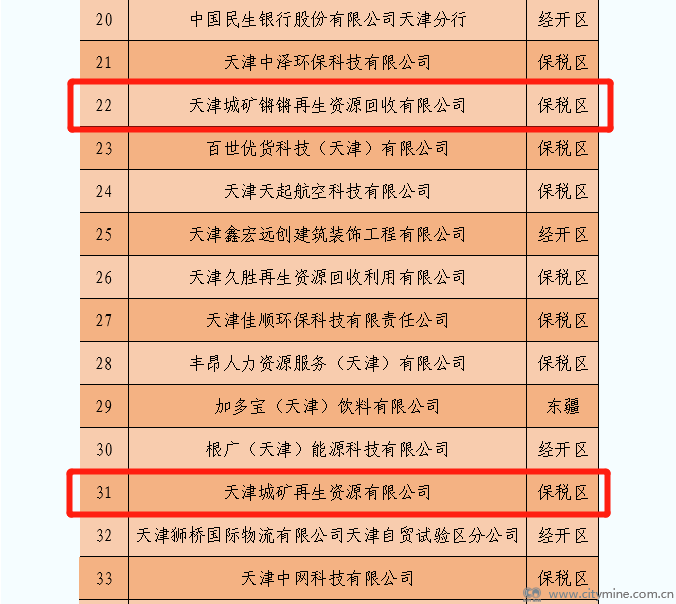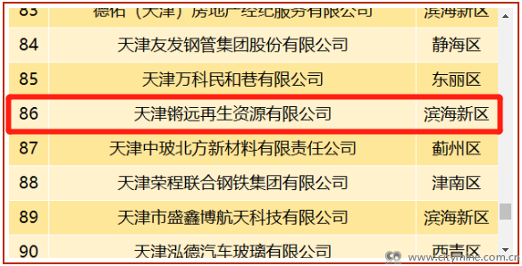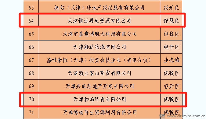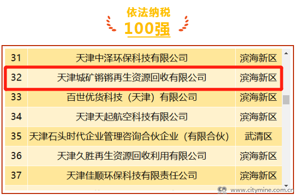 天津拾起卖科技集团有限公司上榜“2022年度销售收入100强”企业;集团旗下4家子公司上榜“2022年度依法纳税100强”企业,分别是:天津城矿锵锵再生资源回收有限公司、天津城矿再生资源有限公司、天津锵远再生资源有限公司、天津和鸣环资有限公司。