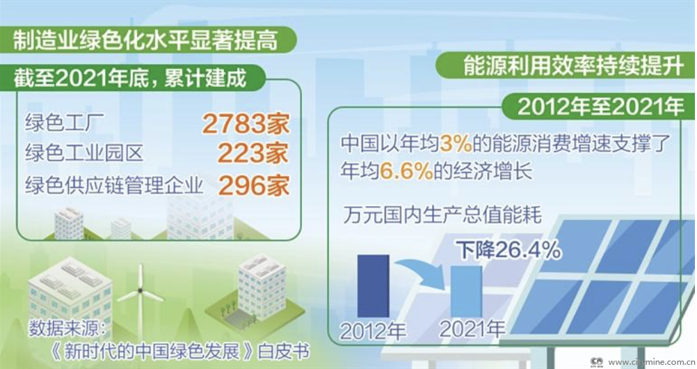 在绿色化发展方面,工信部等3部门已印发《工业领域碳达峰实施方案》,在钢铁、有色、建材、石化化工4个行业分别制定了碳达峰方案,通过顶层设计明确了工业碳达峰的目标、任务、途径和措施。当下,各部门各行业正通过推广应用节能减碳技术,提高能源利用效率,加快推进工业绿色低碳转型。
