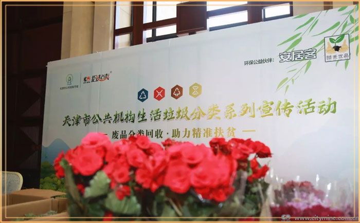 2019年12月17日天津市公共机构生活垃圾分类系列宣传活动之“废品分类回收·助力精准扶贫”旧物兑换扶贫产品和“资源再生 以旧换绿”旧物换绿植主题活动在政府大院内顺利开展。活动由天津市机关事务管理局主办、天津拾起卖科技有限公司承办、天津裕靓传媒策划执行,并由爱心企业赞助支持。本次系列活动的扶贫兑换产品及相关奖品均采购自精准扶贫指定企业。