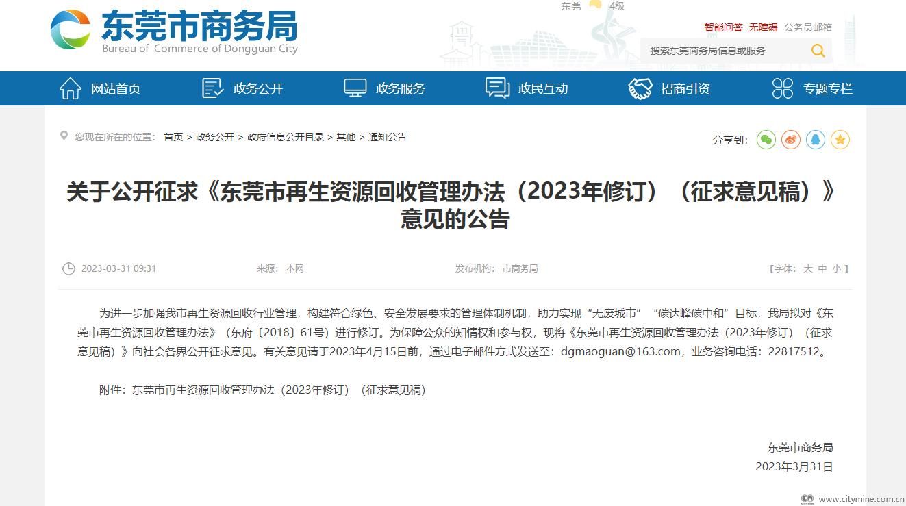 原标题:广东省东莞市再生资源回收管理办法 2023年修订(征求意见稿)