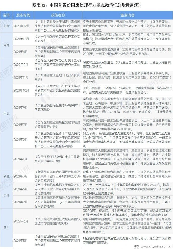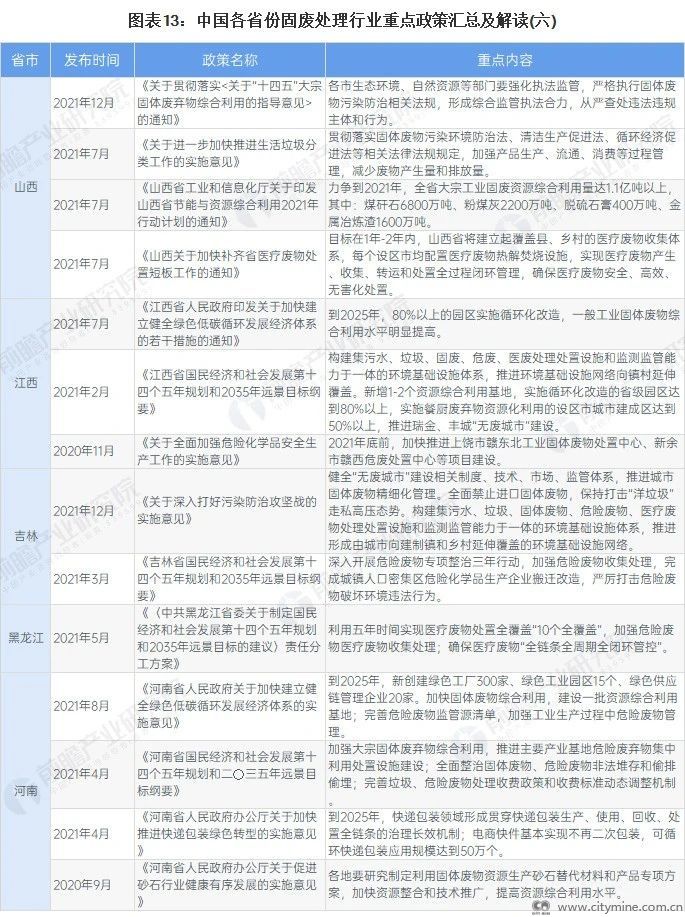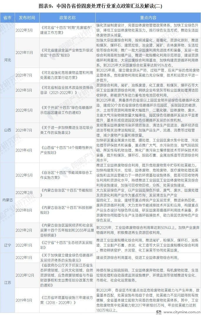 国家及31省市固废处理行业政策汇总及解读