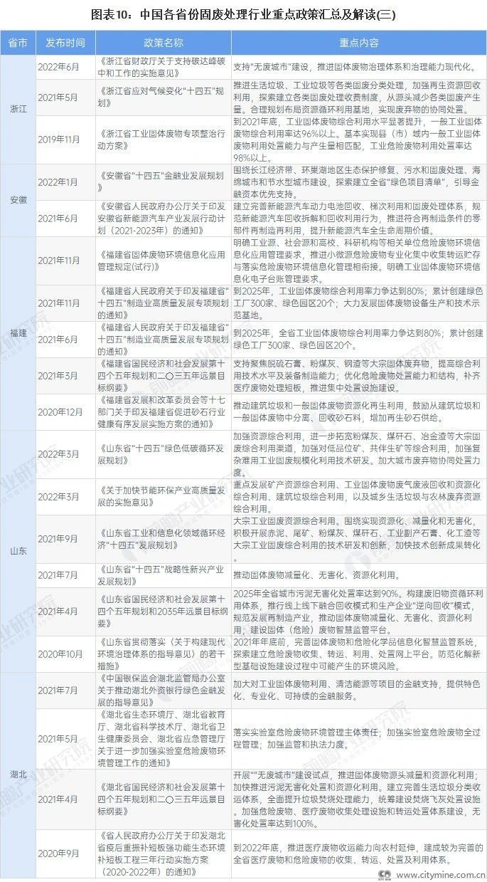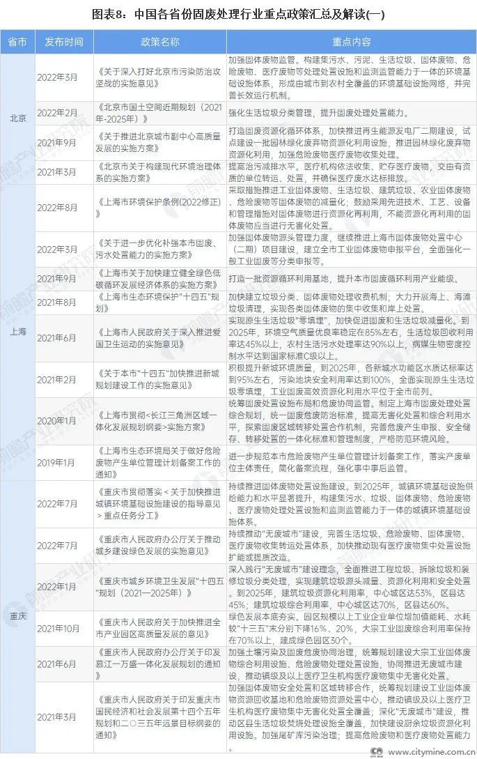 在国家政策的引导下,各省市地方政策近年来也均对固废处理行业有所提及: