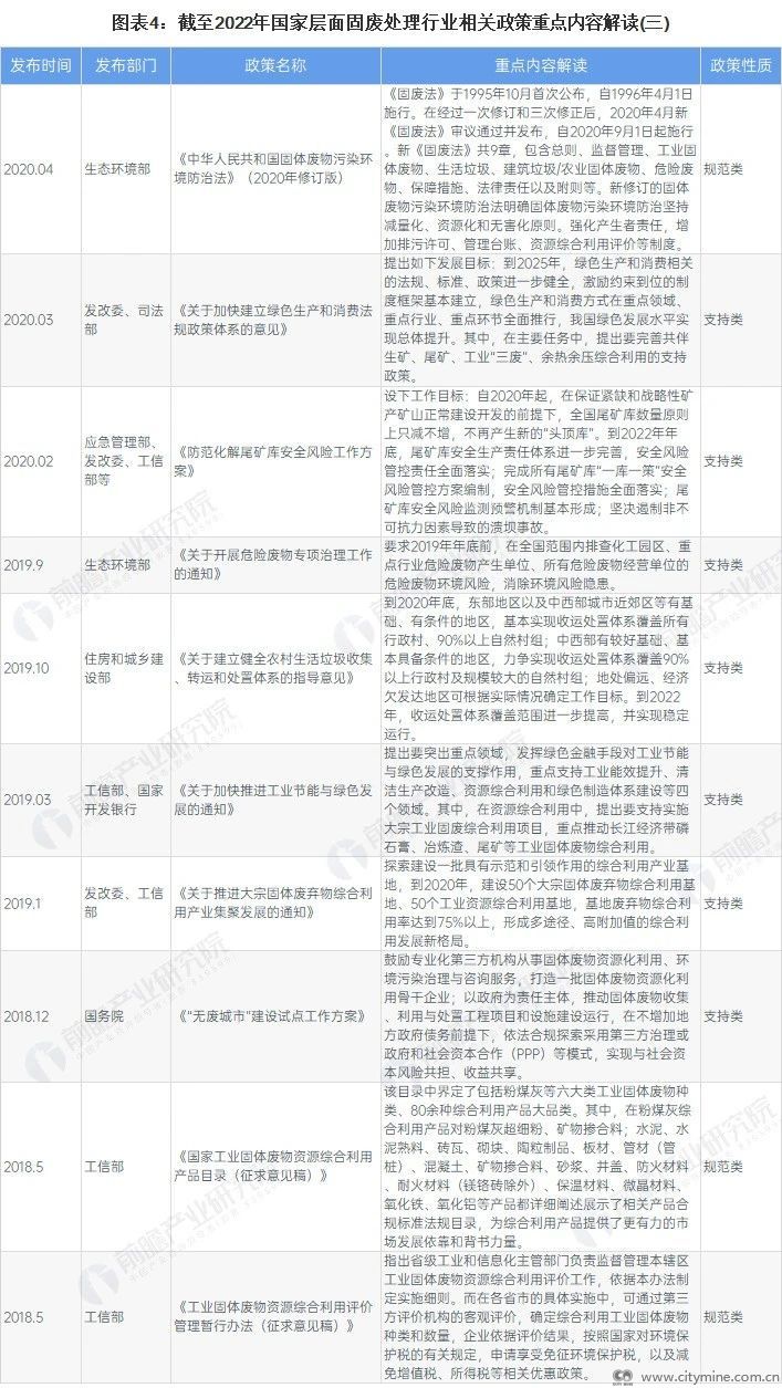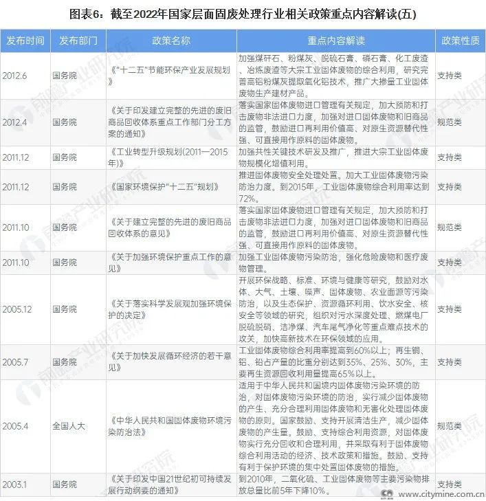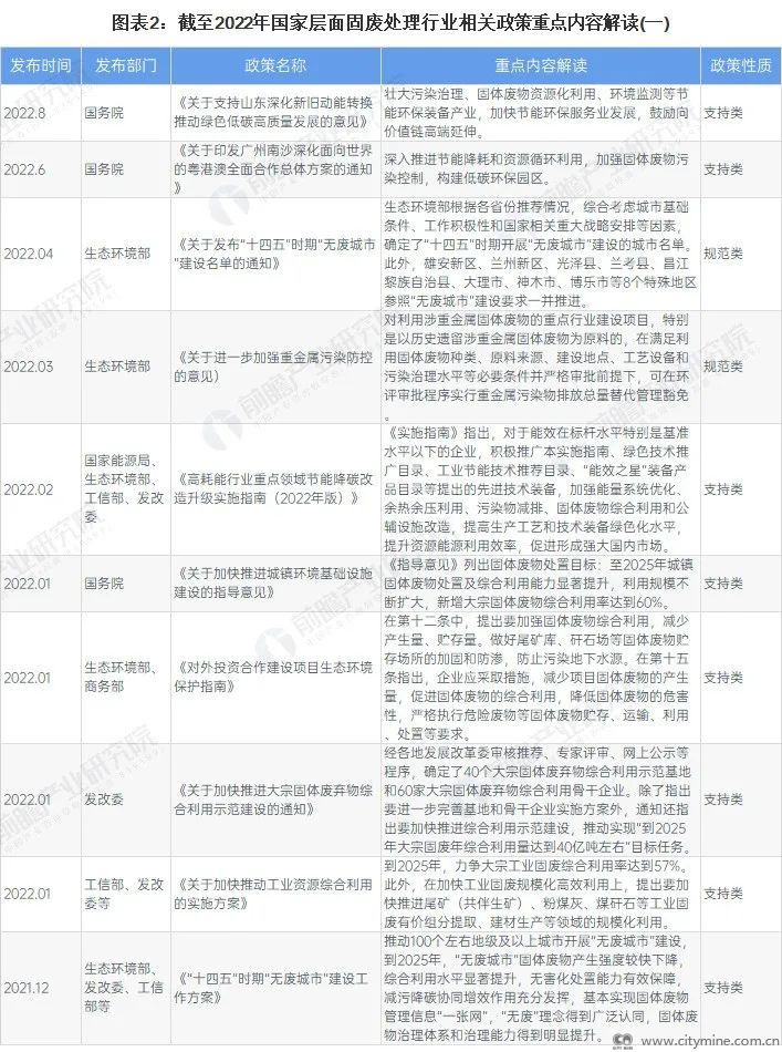 国家层面固废处理行业政策汇总