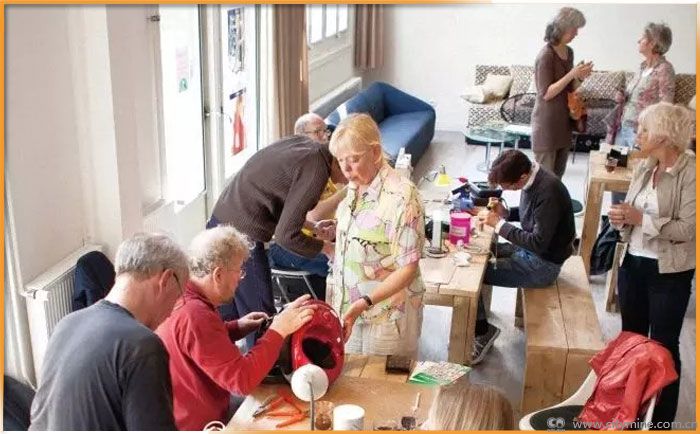 咖啡馆定期邀请各方面的维修专家来坐镇,有东西需要修理的人们带着自己坏掉的东西来维修,所有的维修服务都是免费的。其实很多人的动手能力都很强,修理电器和家具、裁补衣物等等,不同的人有不同的爱好和兴趣,来寻求维修服务的人,同时也可以给其他人提供维修服务。大家修好了自己东西的同时,也或许因给别人维修东西而满足了自己的兴趣,获得了成就感!