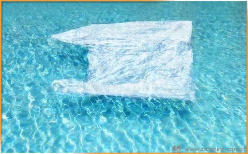如今有一种新型塑料袋问世了。一个看似普通的白色塑料袋,放入80℃左右的热水中,数秒钟后,塑料袋消失了~