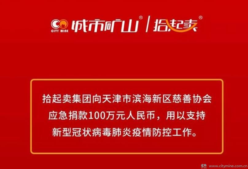 1月27日,拾起卖集团董事会紧急网络会议通过,决定捐款100万元,用以支持新型冠状病毒肺炎疫情防控工作,并于27日下午将善款拨付天津市滨海新区慈善协会。