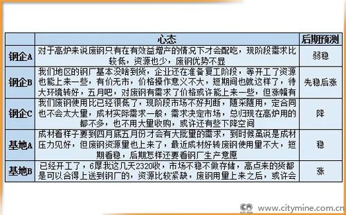 据了解,钢企自年后开始废钢需求持续走低,作为原料,累库未好转期间更是打压对象之一。钢企利润主导废钢价格走向,在利润允许范围内,资源紧缺可对形成利好支撑,心态调研涨跌互现。万变不离其宗,废钢价格走向先看钢企生产意愿。