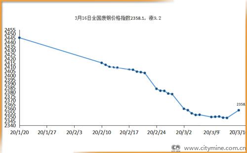2020年03月19日在3月16日,废钢全国价格指数(fb-index)为2358.1元每吨,全国均价上涨9.2元每吨。