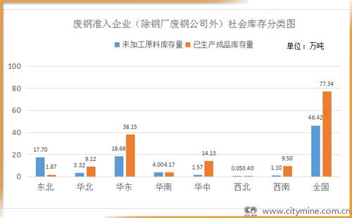 图2:废钢准入企业未加工原料及已加工成品库存对比图