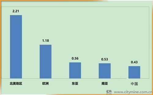 图表 1:2016年全球主要国家和地区人均垃圾产生量(千克/日)