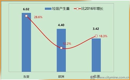 根据2018年12月世界银行发布的调查报告,2016年全球城市生活垃圾产生量为20.1亿吨。东亚太平洋地区是目前产生垃圾最多的区域,占世界垃圾总量的23%。尽管高收入国家仅占全球人口的16%,但产生的垃圾量却超过世界垃圾总量的三分之一。