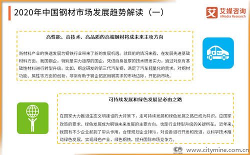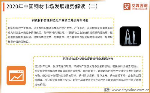 2020年04月07日2020年4月1日,全球知名的新经济产业第三方数据挖掘和分析机构iiMedia Research(艾媒咨询) 发布《2020年中国钢材市场运行大数据与市场发展趋势研究报告》。报告根据艾媒数据中心、艾媒咨询商业情报数据库、艾媒商情舆情数据监测系统基础数据,对2020年中国钢铁行业及其细分领域的粗钢、螺纹钢等进行分析。此外,报告探讨产业上下游的运营模式,结合对宝钢股份、华菱钢铁、河钢股份和沙钢股份四家典型企业的案例分析,对钢铁行业总体运行情况进行分析,并结合新冠疫情对2020-2021年钢铁产业发展进行趋势预判。数据显示,2019年钢材产销率基本稳定在99%以上。但是2018年,中国钢铁产业集中度仅为35.3%。产业集中度偏低成为中国钢铁行业进一步发展的巨大障碍,一定程度上限制了中国钢铁企业的国际竞争力。艾媒咨询分析师认为。2019年中国钢材的国内需求增长强劲,特别是疫情影响下2020年新基建建设、智能汽车发展等需求将进一步拉动钢材的行业增长。