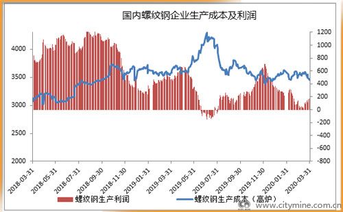 截止3月31日,高炉厂螺纹钢生产成本为3454元/吨,电炉厂生产成本为3609元/吨,当前市场螺纹钢销售均价为3611元/吨,螺纹钢生产企业利润情况较上个月有明显的好转,其中高炉厂生产螺纹钢平均利润为156元/吨,电弧炉企业生产螺纹钢平均利润为2元/吨。虽然两者利润水平不高,但均有增长空间,一是两者产能利用率均不高,公摊较大;二是废钢处于下跌通道之中。故整体利润仍有向好空间。