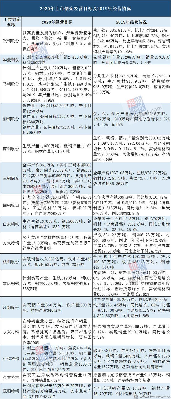 Mysteel:16家上市钢企公布2020年经营目标