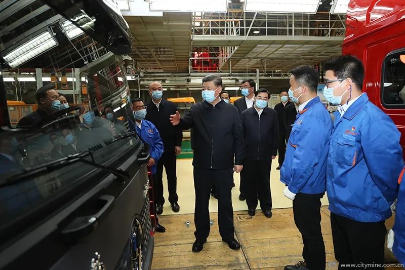▲2020年4月22日,习近平在陕西汽车控股集团有限公司总装车间察看生产线,了解产品研发、生产、销售和复工复产情况。