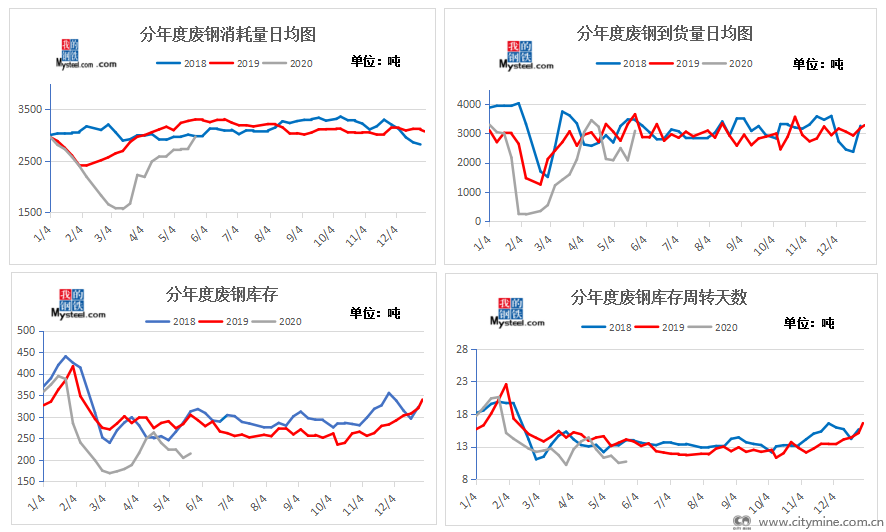 2020年05月19日上周废钢市场窄幅偏强运行,主流钢厂的一波小幅拉涨,带动市场情绪走高。关于近期唐山等地区存在的限产预期,上周末钢坯大涨70元/吨,带动成材现货市场情绪高涨,现货价格上涨的同时带动本周一黑色期货盘面的高开高走,铁矿期货逼近涨停,而废钢市场持稳观望为主。部分华东电炉厂本已逼近盈亏边缘,成材的此次拉涨,导致螺废价差扩大,盈利空间攀升。关于上周钢厂废钢库存及相关到货情况: