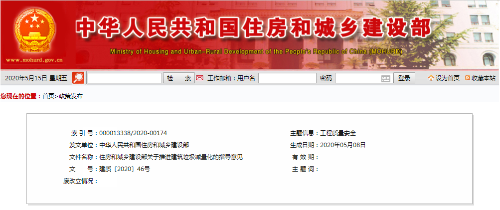 重磅丨住房和城乡建设部印发《意见》 推进建筑垃圾减量化工作