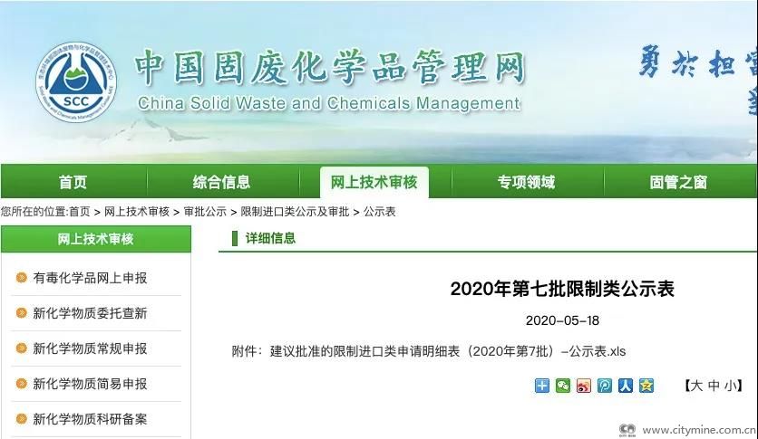 2020年05月20日2020年第七批限制类进口公示表显示,共获废纸核准总量为5.581万吨