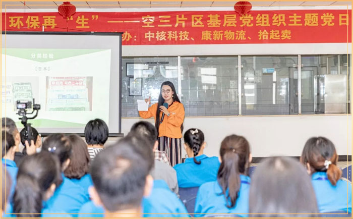 本次垃圾分类主题党日活动主要分为三部分,包括垃圾分类公开课、互动游戏分类实操以及废品回收以旧换绿环节。