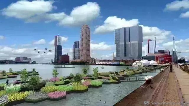荷兰的浮动公园由专业设计人员耗时5年打造,面积达140平方米,而用作公园搭建的28个六边形连接块,全部是由从港口和河流中回收的塑料废弃物制成。
